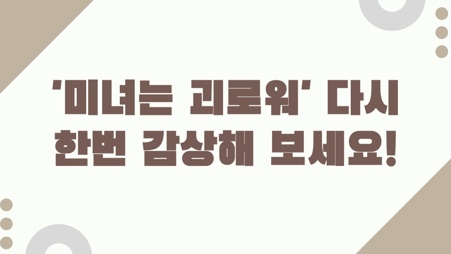 우리 사회의 외모 지상주의에 대한 깊은 질문을 던지며 많은 이들에게 공감과 감동을 선사한 작품입니다. 혹시 이 영화를 처음 접하시거나, 혹은 오랜만에 다시 찾아보고 싶다는 생각을 하고 계신가요? 그렇다면 잘 찾아오셨습니다. 오늘은 이 매력적인 영화 '미녀는 괴로워'에 대한 모든 것을 파헤쳐 보고자 합니다. 줄거리부터 인상 깊었던 명대사, 그리고 OST까지, 여러분이 궁금해할 모든 정보를 꼼꼼하게 담았습니다.