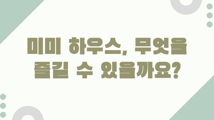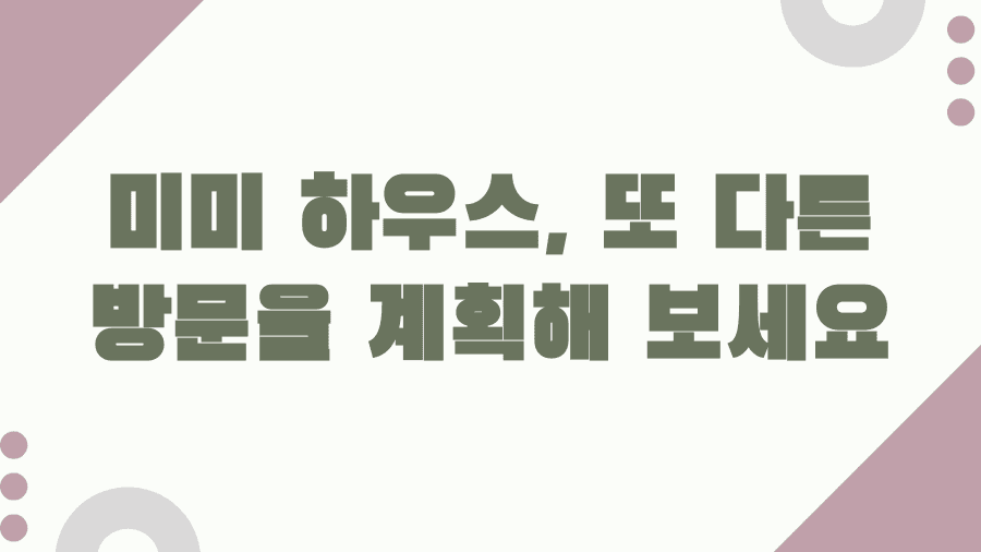 그래서 오늘은 여러분의 궁금증을 속 시원히 해결해 줄 '미미 하우스'에 대한 모든 것을 준비했습니다. 이곳이 왜 그렇게 많은 사람들의 사랑을 받는지, 방문하기 전에 꼭 알아야 할 정보들을 꼼꼼하게 살펴보며 즐거운 방문 계획을 세워보세요.
