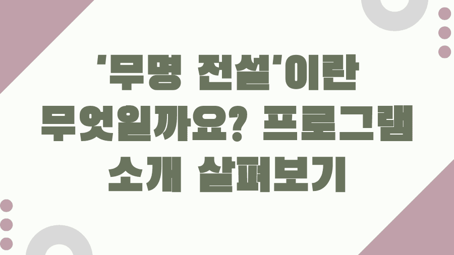 '무명 전설'이란 무엇일까요? 프로그램 소개 살펴보기